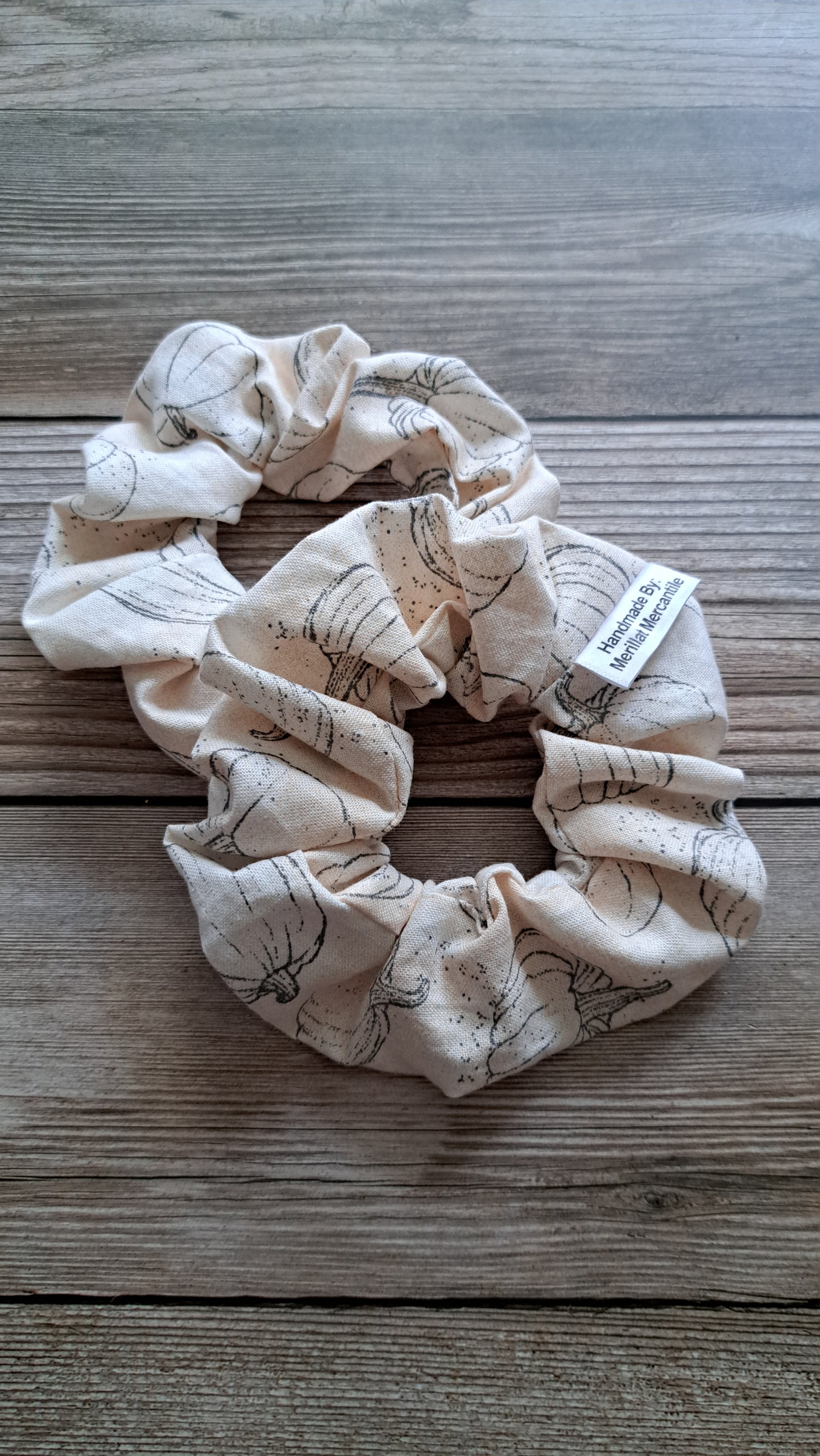 Celebrate the cozy spirit of autumn with this set of two scrunchies crafted from creamy orange fabric adorned with delicate gray sketched pumpkins. These soft and comfortable scrunchies gently secure your hair while adding a warm, seasonal touch to any outfit. Perfect for embracing fall’s charm every day.