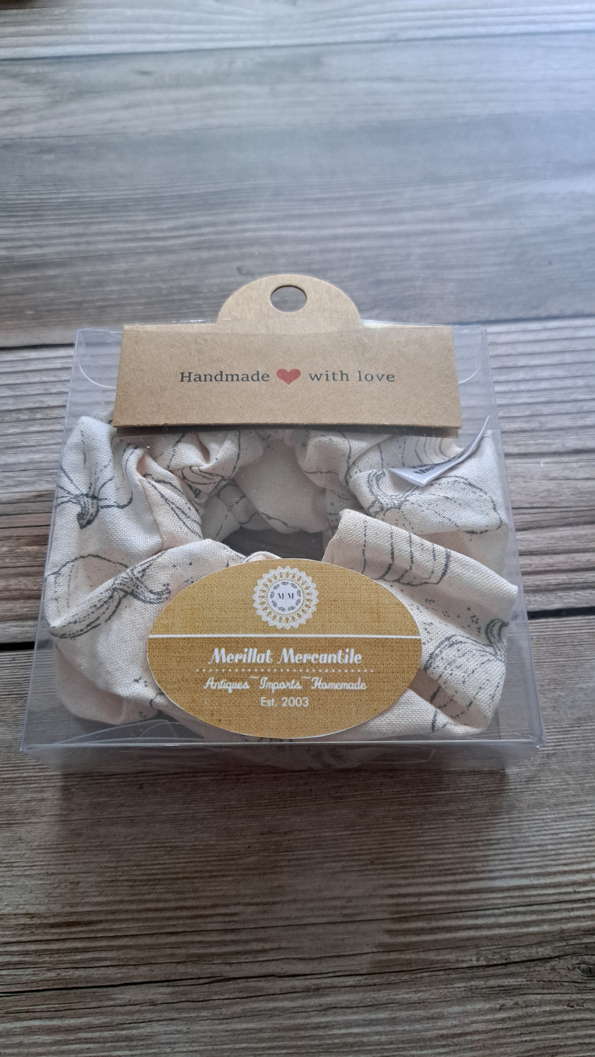 Creamy Orange with Gray Sketched Pumpkins Scrunchie Set of 2