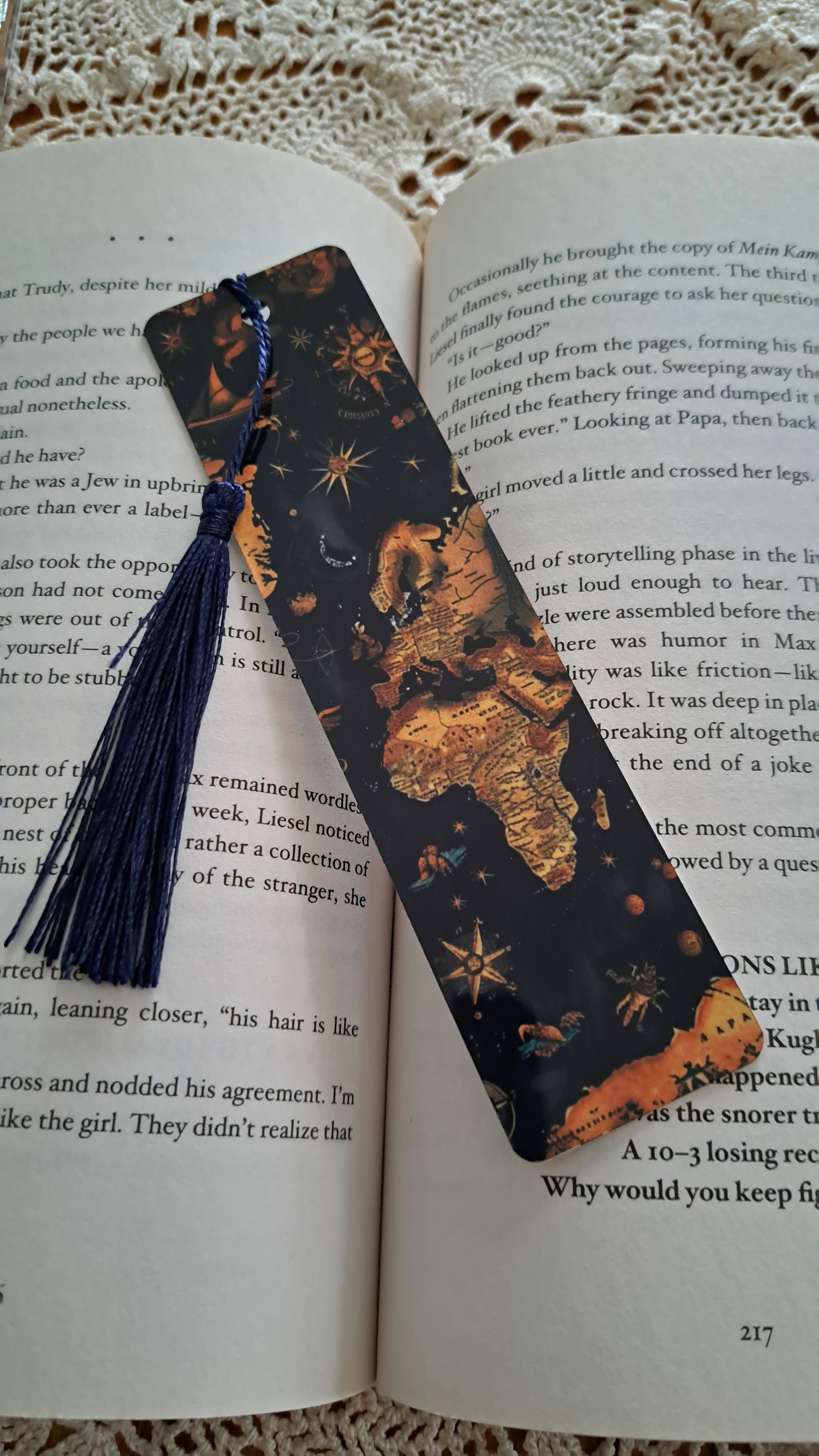 Metal Old World Map Bookmark With Dark Blue Tassel