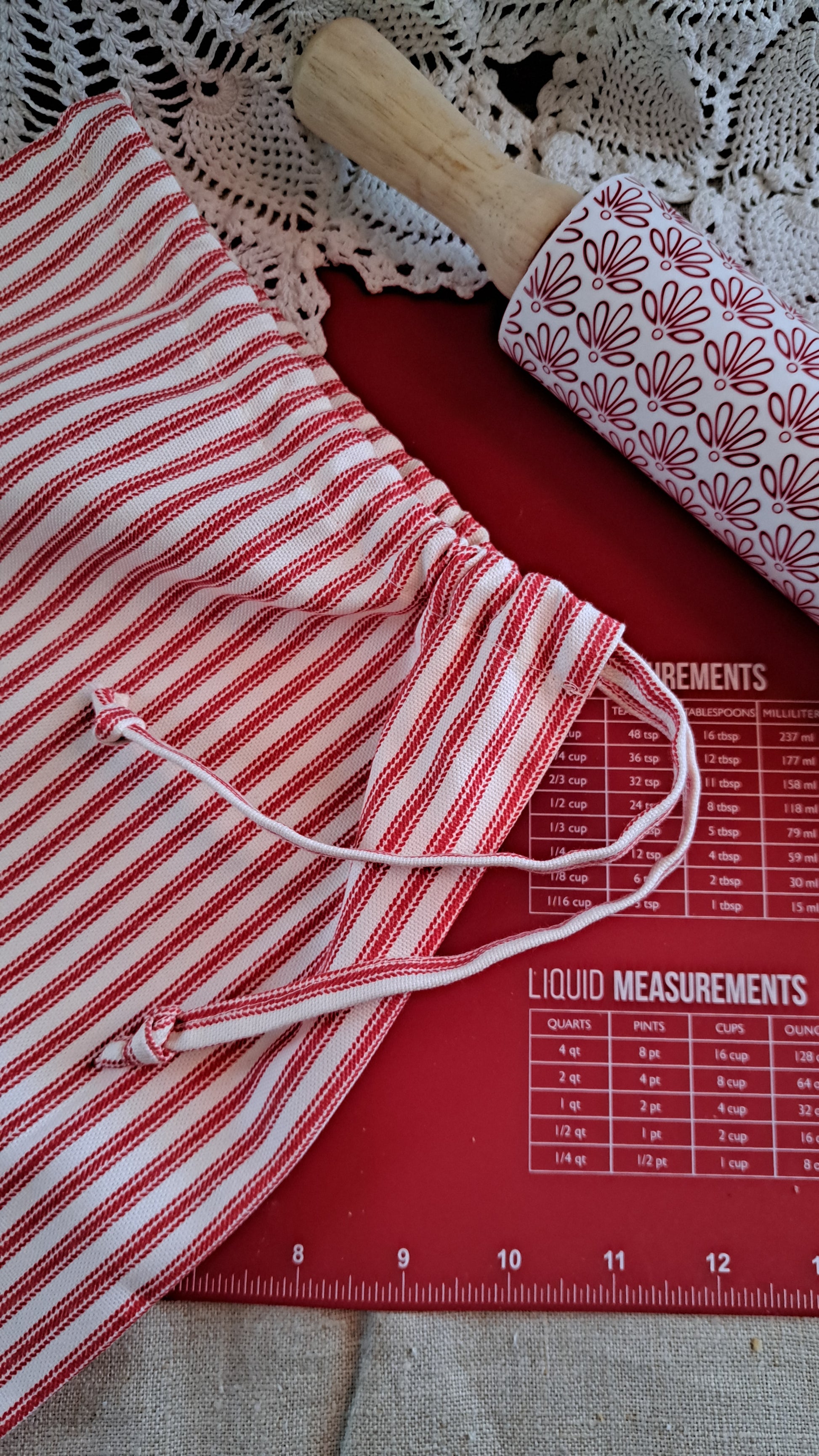 Bring festive charm to your kitchen with this delightful Red & White Striped Bread Bag! Handcrafted from sturdy cotton fabric in cheerful holiday colors, this charming bag keeps your fresh-baked bread protected. Secure fabric ties cinch the top closed, while the durable construction withstands countless washes. Perfect for storing homemade loaves, gifting baked goods to loved ones, or adding a touch of seasonal warmth to your holiday table. Eco-friendly and reusable, it's a gift that keeps on giving season after season.