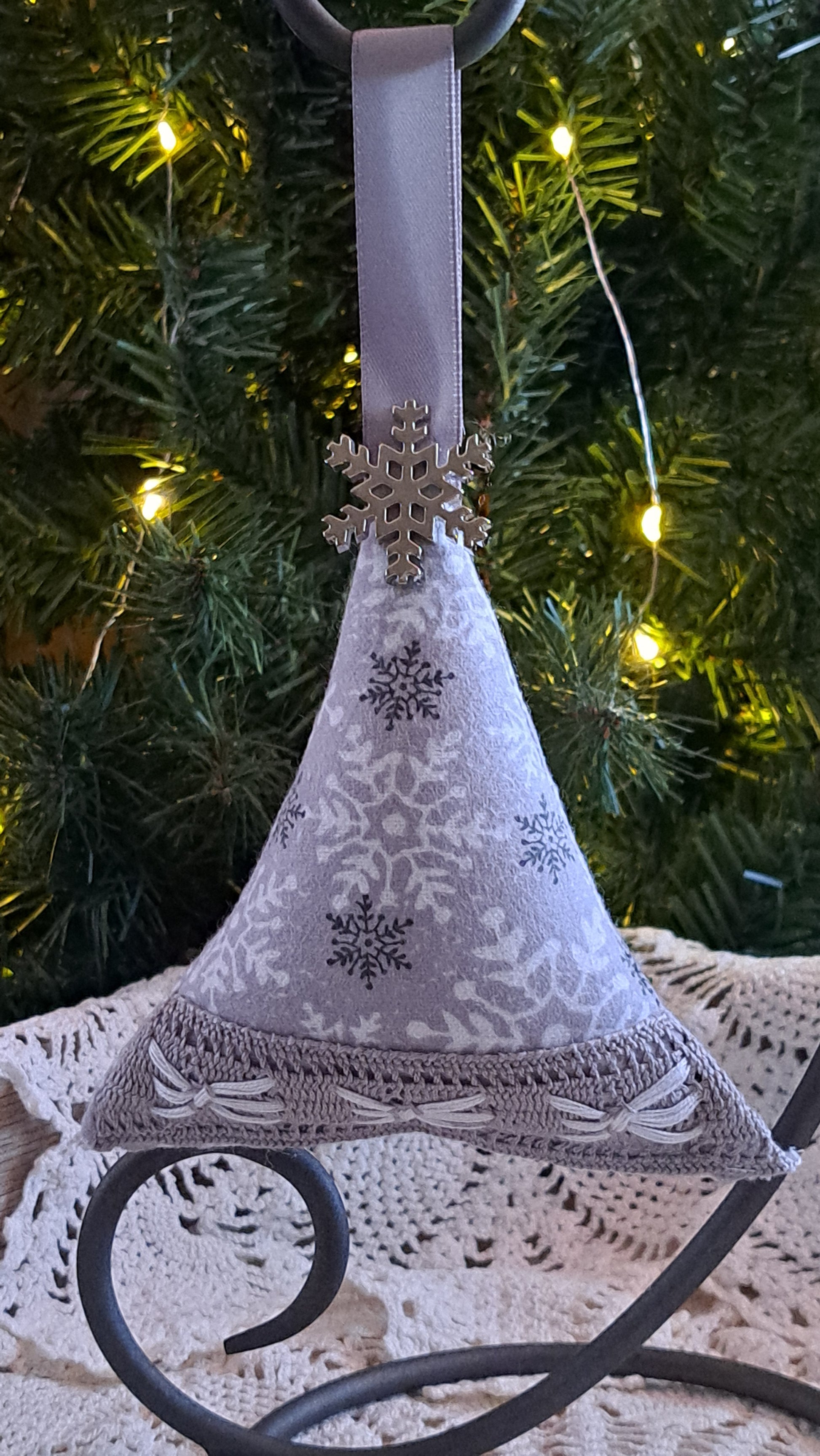 Celebrate the season with this charming handmade gray and white snowflake fleece ornament. Crafted from soft, cozy fleece and generously stuffed with fiberfil, this delightful decoration features a shimmering silver snowflake accent that catches the light beautifully. Perfect for adding a touch of winter magic to your tree, it brings handcrafted warmth and festive cheer to your holiday display. A treasured keepsake that spreads seasonal joy year after year.