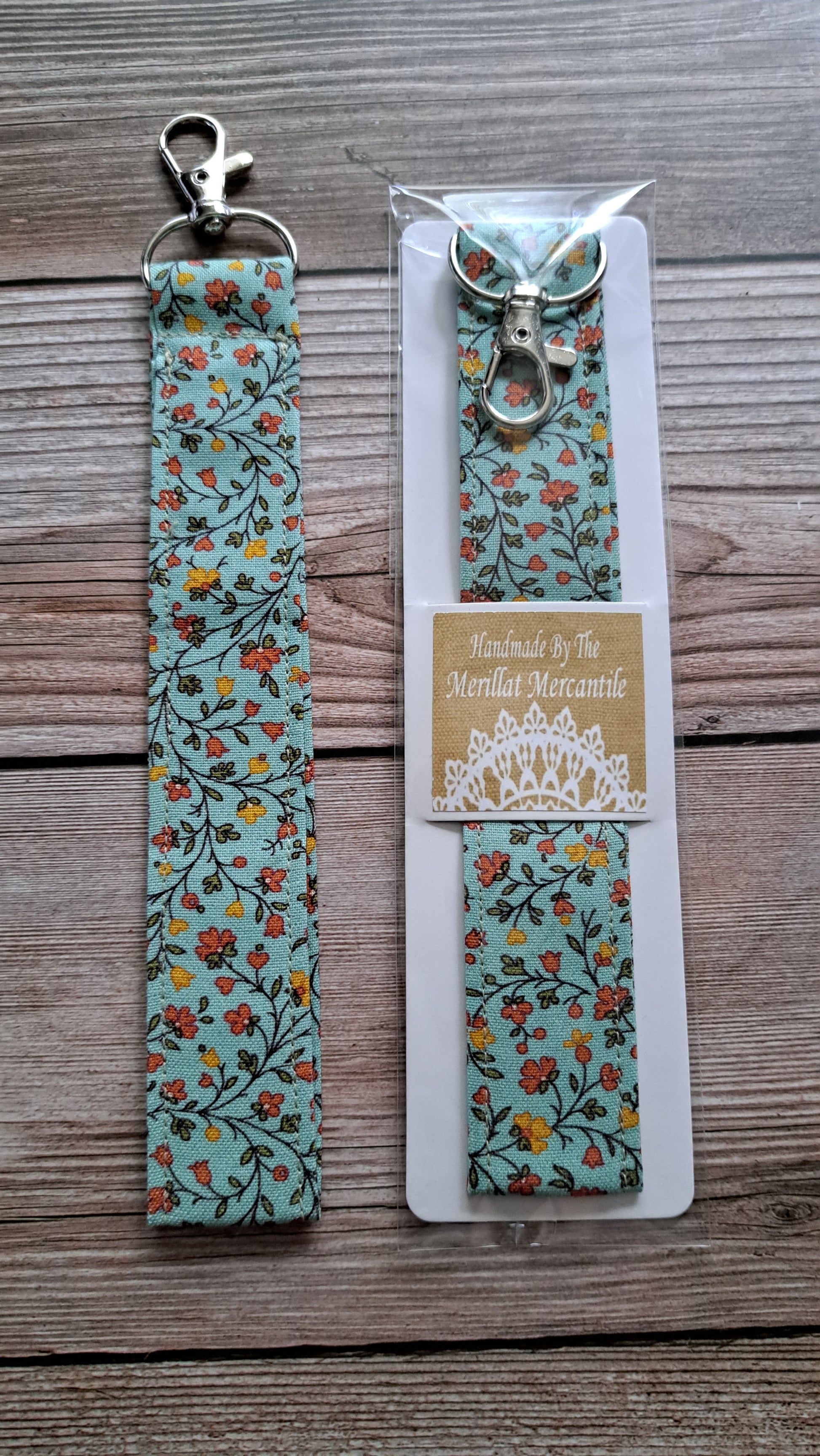 Capture the spirit of autumn with this yellow, orange and teal floral wristlet, adorned with warm, rich hues that evoke the season’s beauty. The silver metal lobster claw clasp adds a subtle shine, perfectly balancing comfort and elegance. Ideal for keeping your keys close while reflecting the cozy colors of fall.